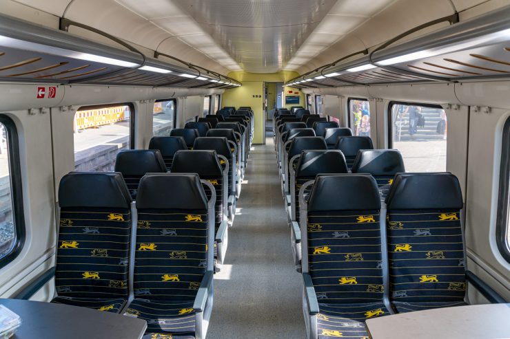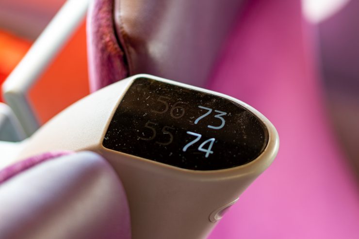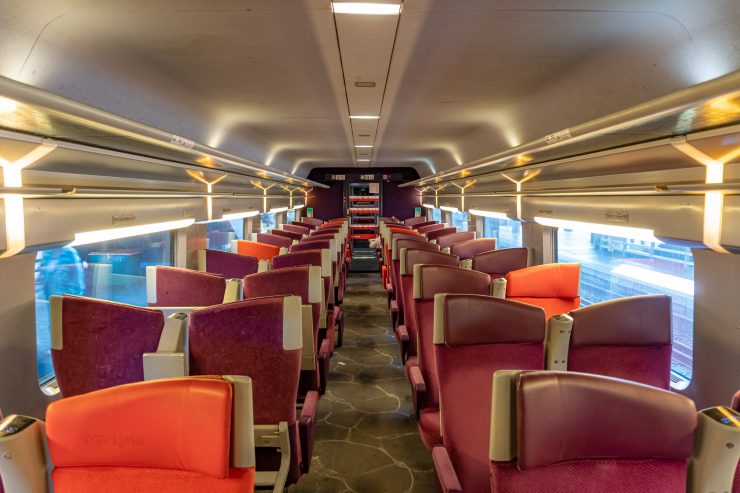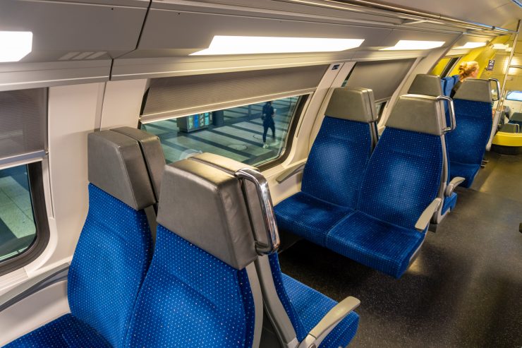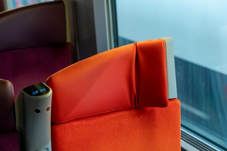 Wnętrze pociągu także sprawia bardzo pozytywne wrażenie. Chociaż brak tu na przykład bezprzewodowego dostępu do internetu, do dyspozycji pasażerów oddane są gniazdka elektryczne oraz strefa bistro. Najważniejszym aspektem jednak jest fakt, że mimo wieku opisywanego pojazdu, wynoszącego około 13 lat i ogromnych potoków pasażerów, jego stan jest nadal bardzo dobry. W pociągu zauważyliśmy pewne bardzo ciekawe rozwiązania: pierwszym była zmienna numeracja miejsca, która pozwala na stałe położenie każdego z numerów. Na przykład fotel numer 73 będzie zawsze w kierunku jazdy, bo po dojeździe do stacji końcowej konkretne siedzenia zmienią swoje numery. Drugą kwestią jest możliwość wygięcia zagłówka w każdym fotelu w taki sposób, który pozwala na wygodne zaśnięcie – głowa nie opadnie nam nagle na okno 😉