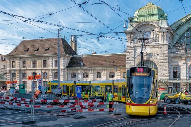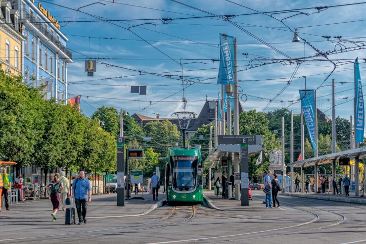 Sam plac przed dworcem Basel SBB, który jest najważniejszym z trzech dworców w Bazylei (oprócz Basel St. Johann oraz Basel Badischer Bahnhof) to obraz niemal idealnej harmonii między pojazdami komunikacji miejskiej, a pieszymi. Mimo tego, że często jest tam ogromny tłok, a w tym momencie prowadzone są prace remontowe przy torach tramwajowych, panuje porządek i jest w pełni bezpiecznie. Ciekawostką jest fakt, że część komunikacji miejskiej w Bazylei jest obsługiwana przez przewoźnika BVB, a część przez BLT.