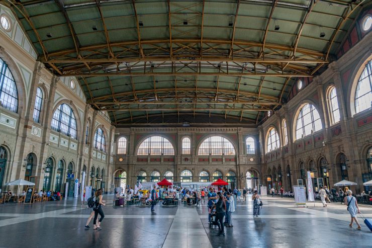 Chociaż samo miasto nie jest wielkie (zaledwie 170 tysięcy mieszkańców), na stacji jest aż 7 peronów. Nieodłącznym elementem wystroju są oczywiście słynne szwajcarskie zegary dworcowe.
